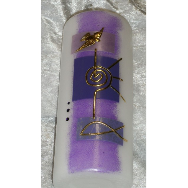 Taufkerze, 470/30mm in violett/gold.